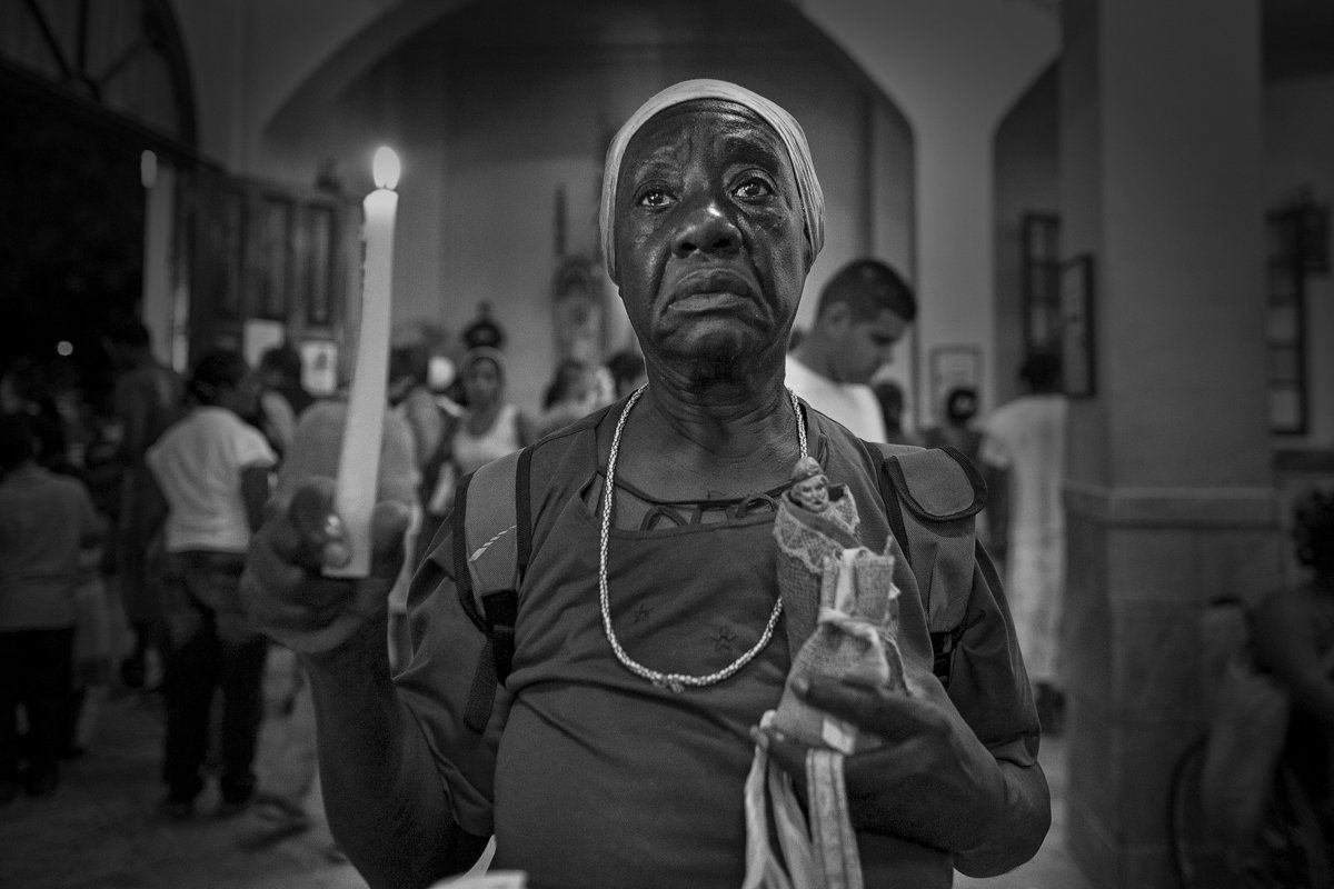Babalú Ayé, in the Yoruba religion is one of their gods and in Cuban Santeria he is represented by Saint Lazarus. I observed that on December 17th the day of worship was celebrated in a city near the Habano called El Rincón. The infinity of street stalls with images of the Saint, made their August selling everything related to Saint Lazarus. There were sculptures larger than a person. Little by little more people came and each time the penance was stronger, suddenly a boy was crawling down the road with a cigar in his mouth, full of images of the saint and a box with money to deliver it to the Sanctuary. At first this surprises you, but it was nothing as the hours went by. Ladies on their knees, crying, another circling to advance, others in chains. Many dressed in purple sack suits, in honor of the clothing that the saint wore and his characteristic color. Late in the afternoon it was already bustling with people, both men and women were smoking cigars and inside the little church the heat and smoke began to be unbearable. The priest who was saying mass, prayed over and over again not to smoke inside the temple, but the devotees paid no attention. Smoking Habanos and Santeria in Cuba are two closely related things that I have not discovered yet. After the sun went down, more and more people kept coming, I don't know where they came from but it was boiling and as the hours passed the passion for Babalú was breathed more in the environment, People in a trance acclaiming the Saint, burning themselves with lighted candles arriving with bloodstained knees, full of rum, that is to say a strong spectacle where they exist, at least for us who were not used to such acts.